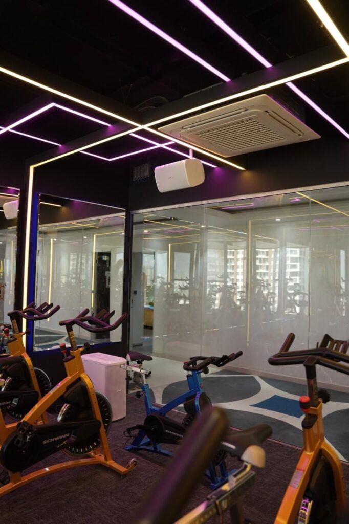 The sound system, designed and integrated by AudioTechnik India️, was engineered to complement the gym’s dynamic environment, delivering powerful, uniform coverage across the Weights Zone, Spinning Room, and Group X Room. The system provides a well-calibrated acoustic environment that enhances motivation and energy without fatigue, ensuring every beat translates into movement and momentum.